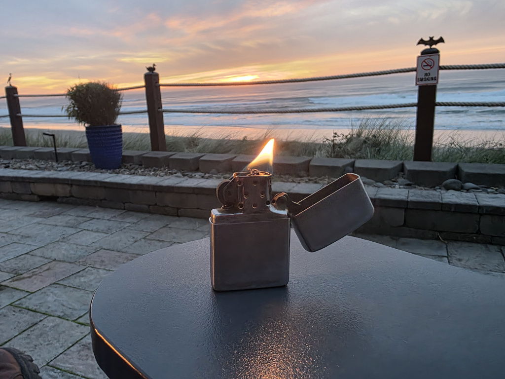 We were at the edge of a cliff overlooking a river in the Cascades outside Seattle when some guy came up in a truck and for some reason – beer? – laughed at us and threatened to drive us off the cliff. Bob said something or another and the guy appeared mad enough that it seemed he was heading our way to do just that. I don’t go into the wilds unarmed … so that stopped that.
