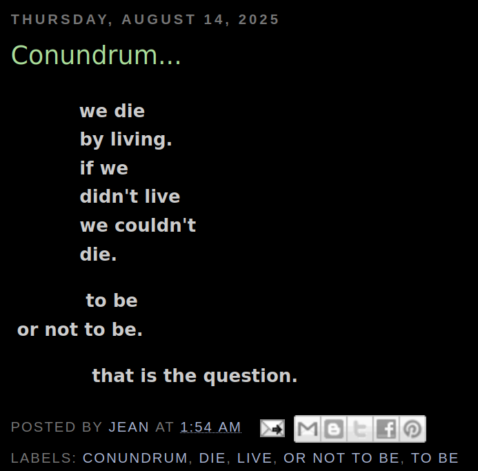 I’ve had Pondering…….for 20 years. Please browse at your leisure.