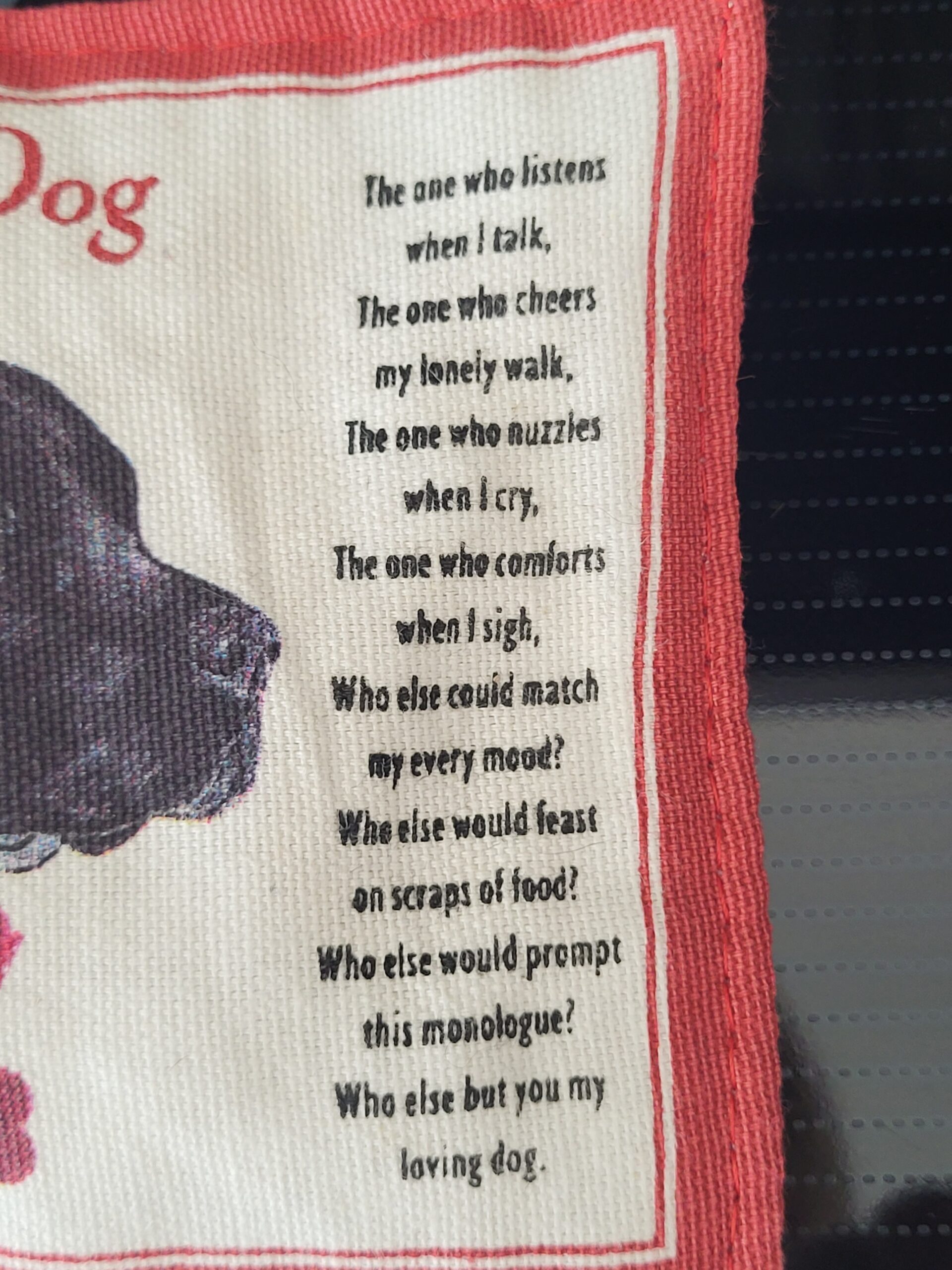 That brings to mind Ghostsniper, who will surely be mourning the loss of his beloved pup, Shannon. Here in the photo is a little dog poem for him. I hope he’s back here at the site soon.
