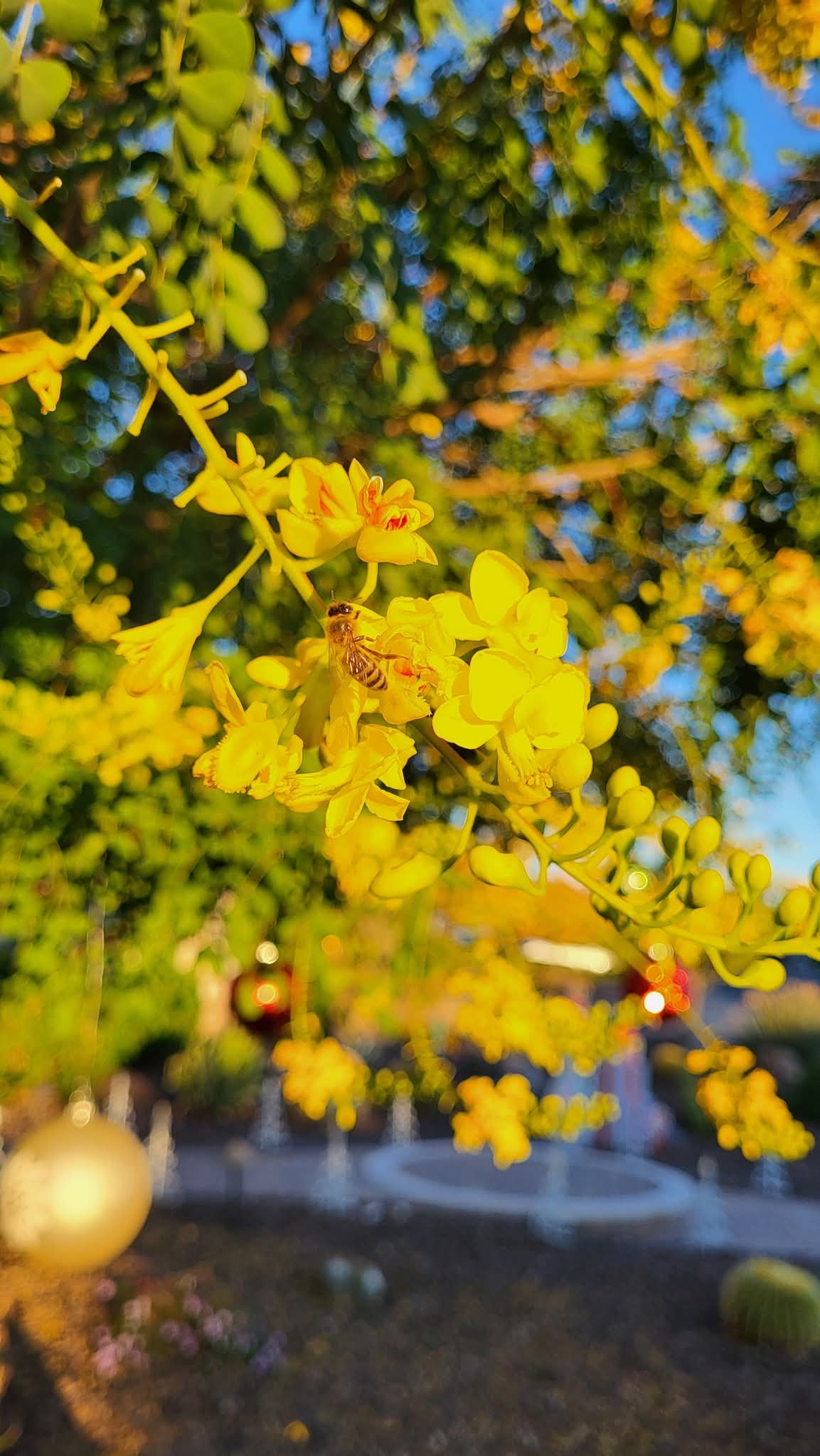 The most recent picture in my phone of flowers, taken on Christmas day. This is a Soft-Coated Cascalote tree