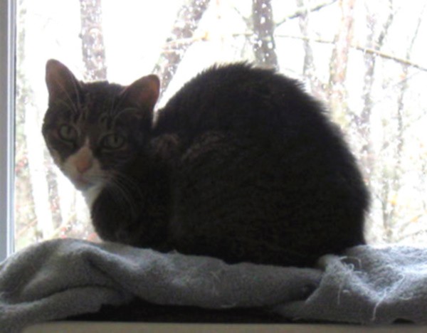 Grey – mis-named from his color at birth – is one of five current residents: mamacat, 3 of her 4 kittens, and a friend – blackcat – who showed up one winter day when the kittens were about 9 months old. The kittens will be 7 this April, mamacat is probably 9 or 10 – she just showed up one day in winter, pregnant and hungry, and blackcat is about 3 or 4 months younger than the kittens so he’ll probably be 7 later this summer.