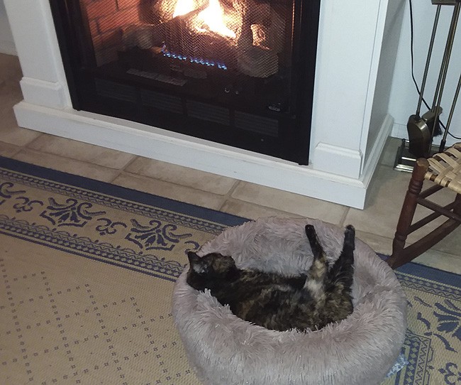 Mamacat here is 9 or 10 … or so. Kittens turn 7 soon. They may outlive me yet but Mrs DT is younger. Too warm here to fire up the fire. Still waiting for winter.