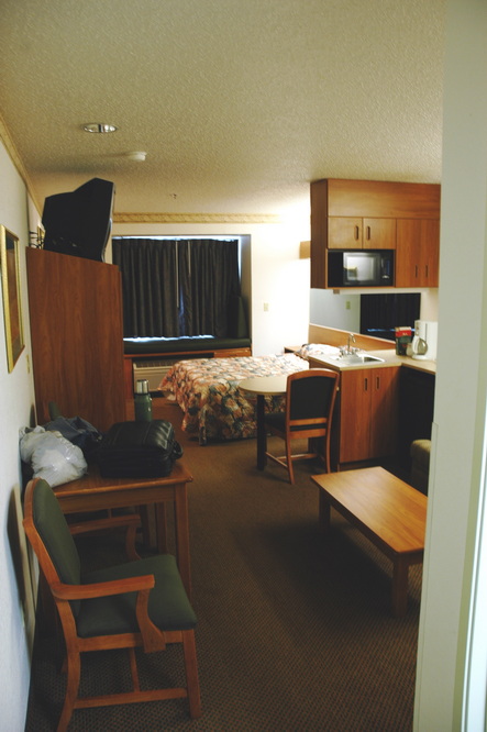 I'm sure I'm not the only one whose work took them to various hotels; here are two representatives of places I've called "home". On the left, a room in Washington, PA where I stayed for a month or so while supervising a test of coal mine equipment; that on the right my home for 2½ years (!!!) at an extended stay place on the DC beltway.